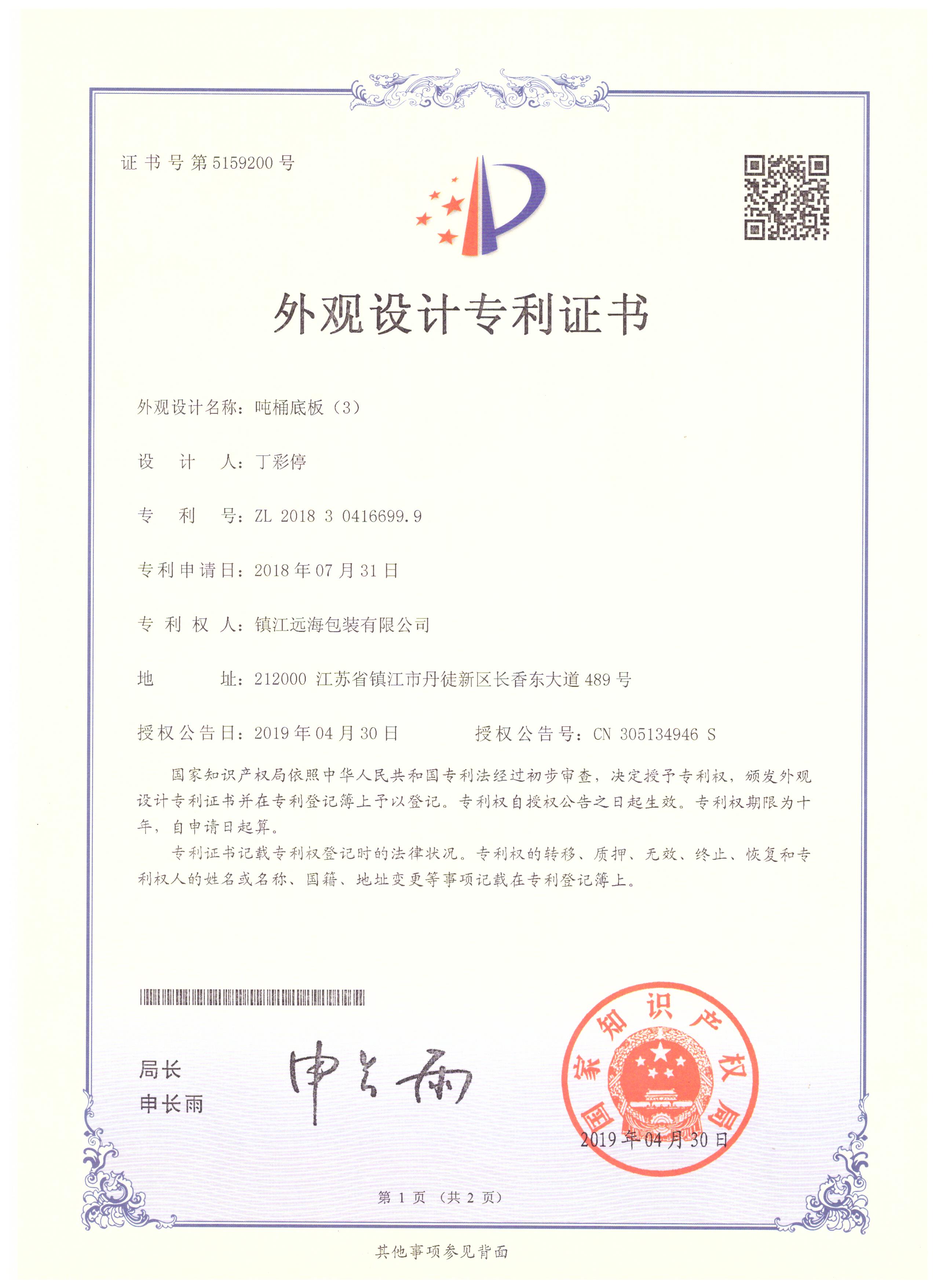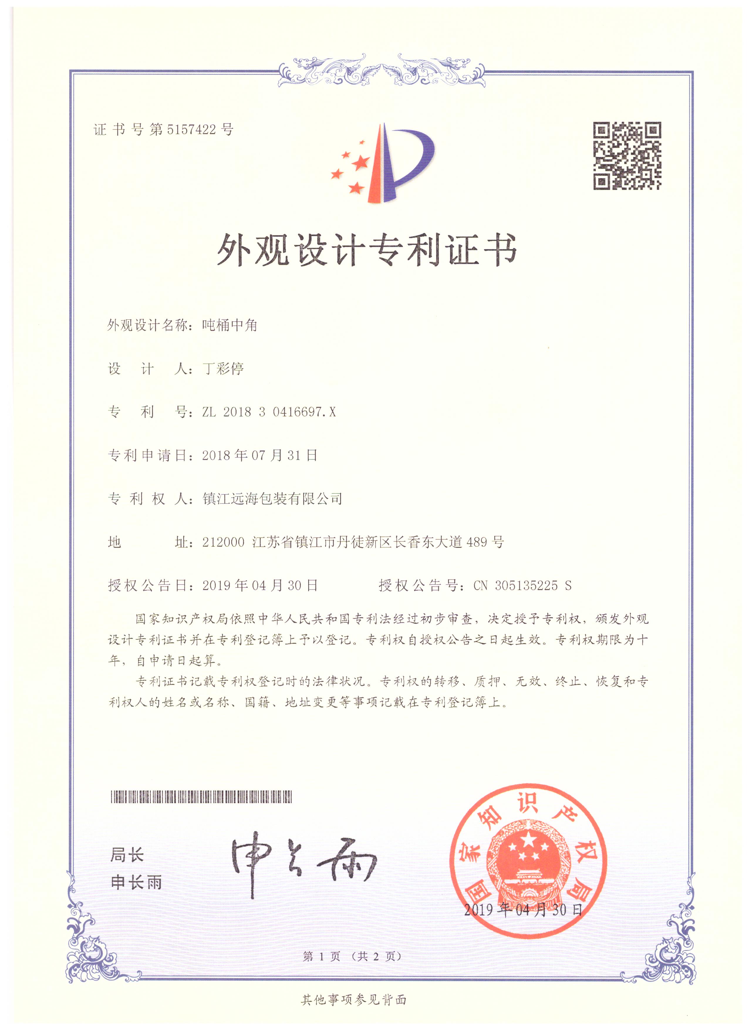 鎮(zhèn)江遠海包裝有限公司成立于2014年8月,是一家專注于生產(chǎn)IBC噸桶及零配件的企業(yè),主要產(chǎn)品有各種型號的底板、橫梁、底角、標牌、鍍鋅焊管等。公司擁有相關產(chǎn)品的外觀型和實用型8項專利。